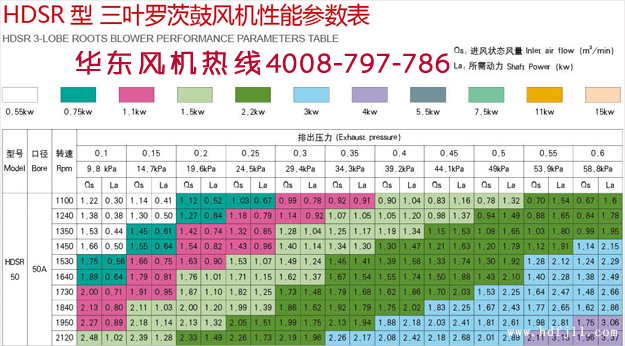 以“羅茨鼓風機4kw”為例,該電機功率下,可以適配多種型號,HDSR50 HDSR65 HDSR80 HDSR100 HDSR125,而涉及到的風量和壓力參數(shù)就更多了,如壓力覆蓋范圍:9.8kpa 14.7kpa 19.6pa 24.5kpa 29.4kpa 34.3kpa 39.2kpa 44.1kpa 49kpa 53.9kpa 58.8kpa。